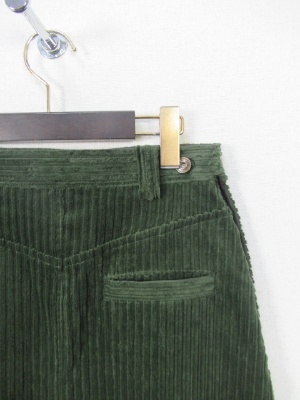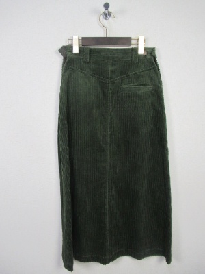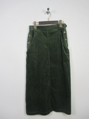 やや太コールのロングスカート、裏地なし、サイドにあるボタンを外して着用、