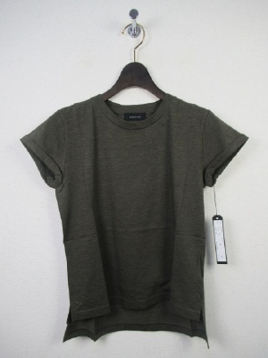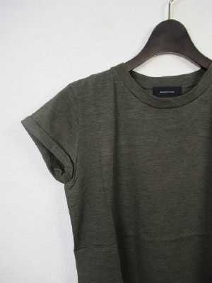 クルーネックの半袖カットソー、袖は折り返しデザイン、手洗い可能、手洗い可能、ID:98836と同じ生地で形違い