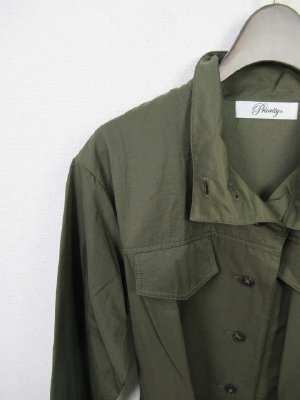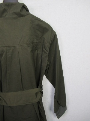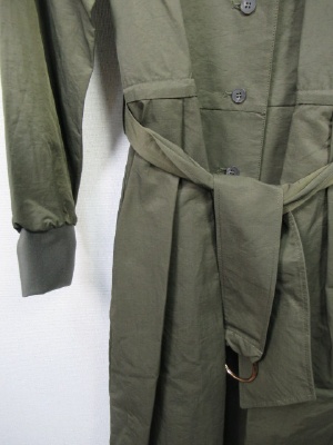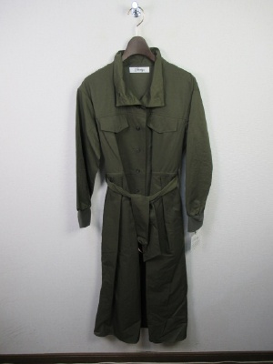 羽織にもなるワンピース(前ボタン)、共のベルト付きデザイン、袖口はリブ、ウェスト部分の内側に調節できる紐あり
