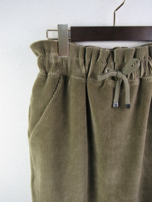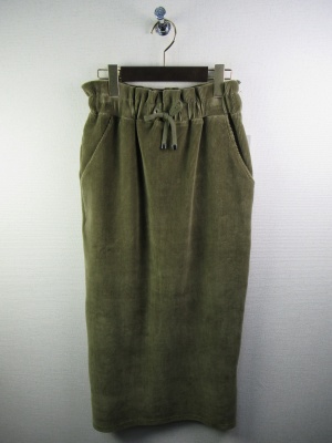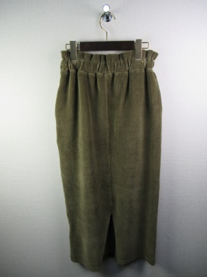 コーデュロイ素材のスカート、ID:99959と同じ素材、タイトスカート、後ろスリット、ミモレ丈、ウェストゴム、ドロストタイプ