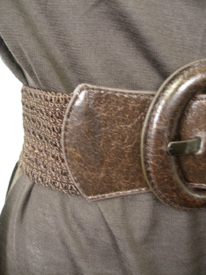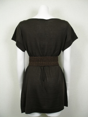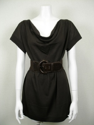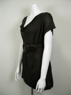 胸元のドレープが大人っぽいニット。ストンとしたシルエットですが、付属のベルトをつけると全く違った印象に。