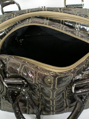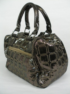 ボストン型のバッグ、キラキラキルティング生地を使用 付属のストラップでショルダーにもなります