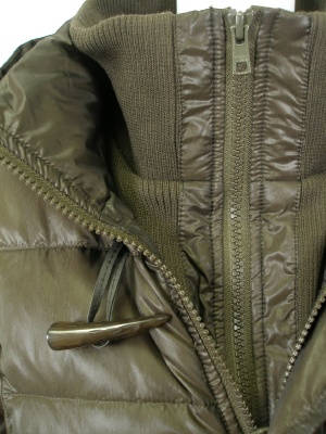 ダウンとリブニットのカーディガンを重ねているようなデザイン。防寒性が高く機能的です。