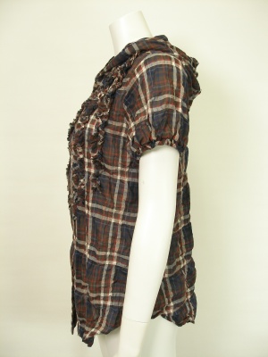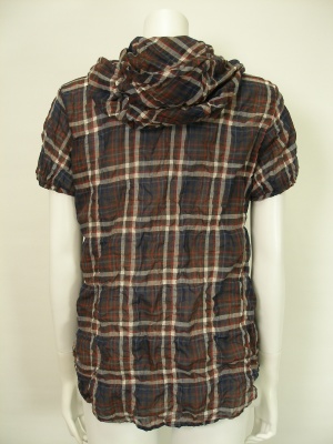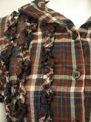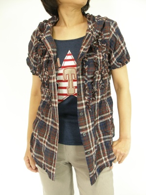 フリルとフードで可愛く仕上げたカジュアルなチェックシャツ。