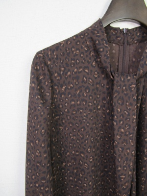 アニマル柄 見せかけのタイ風デザイン 後ろファスナー 袖カフス