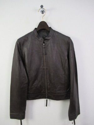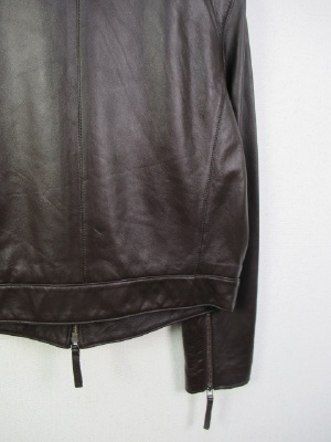 羊革のライダースジャケット 総裏有りノーカラー フロントにポケット 袖口はファスナー有り