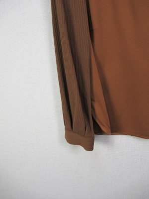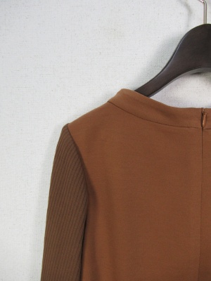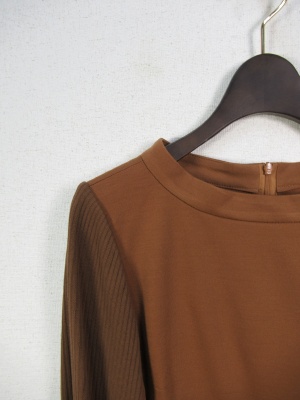 袖はリブニットソー 身ごろと異素材 後ろにファスナー