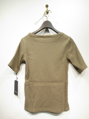 ボートネックに近い横に広めのネック 半袖 細かいラメ入りのテレコ素材 ワイ裾スリット入り 手洗い可能