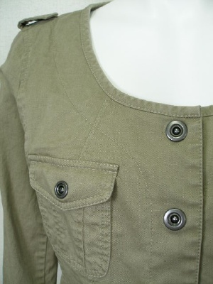細身ですが着やすく、スカートにも合わせやすいカジュアルなジャケットです。裏地なし。