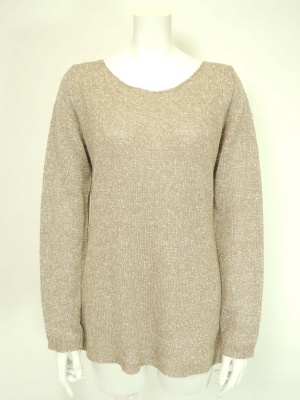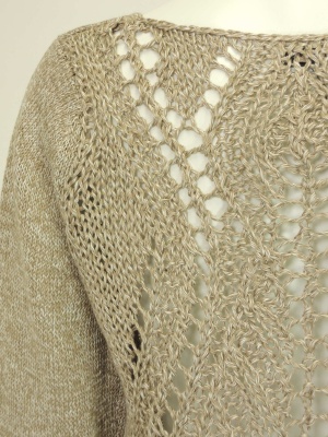 後ろの透かし柄が印象的なリネンのニット。