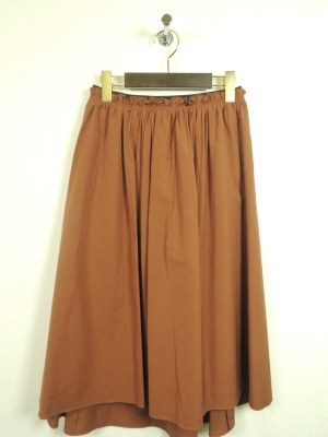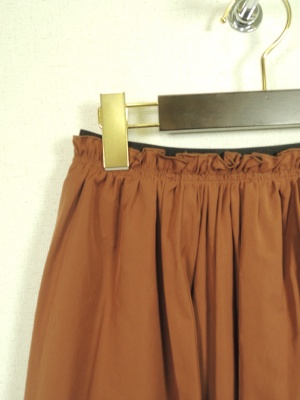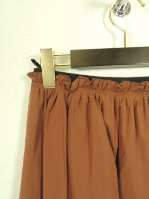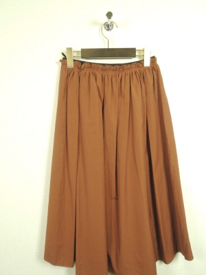 晩夏初秋商品 ウエストゴム、ギャザースカート 前上がり後が長め ひざが隠れるほどの長さ