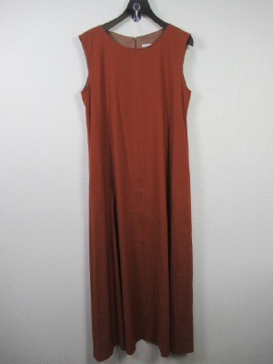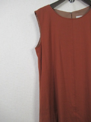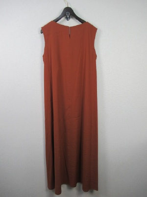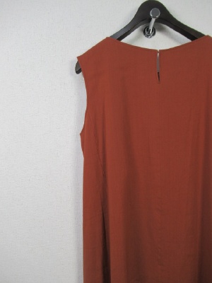 マキシワンピース 裾は広がったシルエット ノースリーブで首の後ろにカギホック 胸元あたりだけ裏地つき 脇ポケット