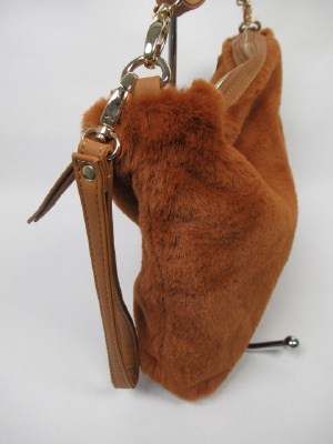 フェイクファー 厚みのない天ファスナー 片方に片手持ちのストラップあり ショルダー どちらも取り外しできる