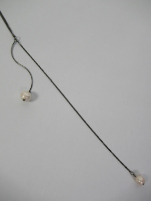 Y字ネックレス、片方はS字に形状したパーツを使用、先端にコットンパール付き