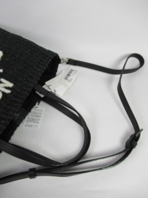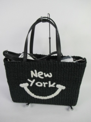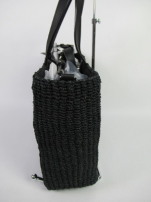 天然素材(マニラ麻)のバッグ、持ち手と取り外し可能なショルダーベルト付き(2WAY使用)で素材は牛革