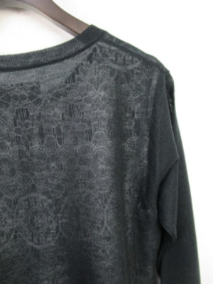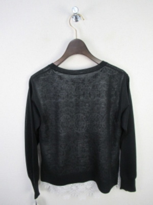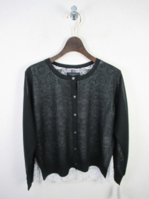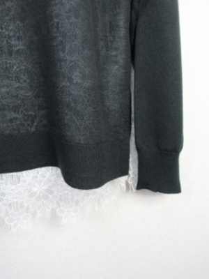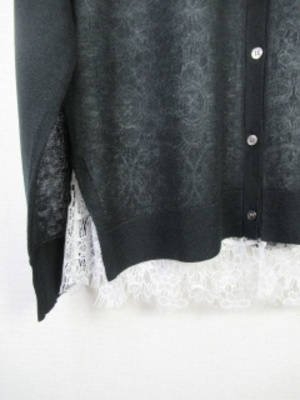 長袖カーデ 身頃内側レース2枚合わせ 裾からレースがのぞくデザイン脇スリット 手洗い可能
