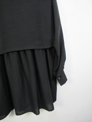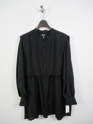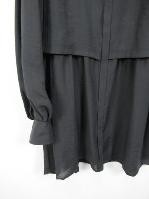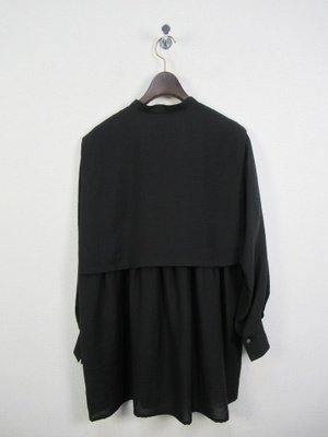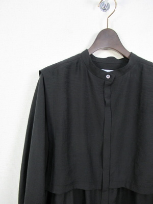 大きな襟のようなデザイン 2枚重ねで脇ボタンで前後をつないでます 光沢感有る生地が特徴 手洗い可能
