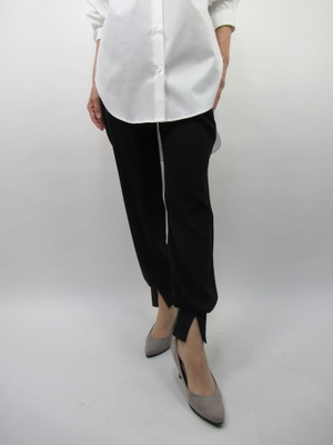 ウエスト総ゴム 脇ポケット 生地は柔らかなオチ感のある生地 裏地無し 裾はリブ 正面スリット入り 手洗い可能