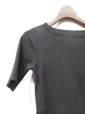 ボートネックに近い横に広めのネック 半袖 細かいラメ入りのテレコ素材 ワイ裾スリット入り 手洗い可能