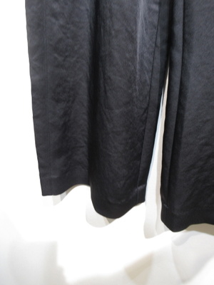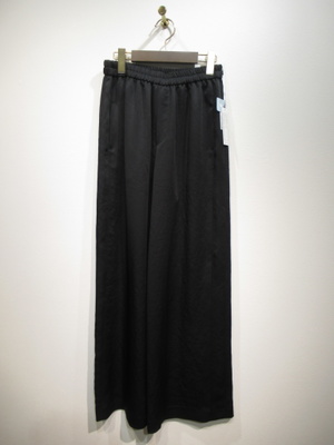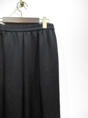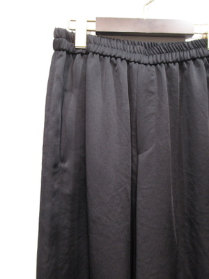 ポリエステルサテンの生地 ソフトワイドパンツ 裾幅とわたり幅は32cmほど 裏地なし ウエストギャザー(紐調整)脇ポケット 手洗い可能
