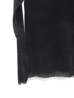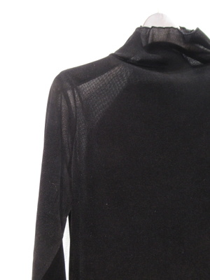 ベロア風のメッシュ生地、インナー、ボトルネック、袖口と襟ぐりと裾がメロー仕上げ、手洗い可能