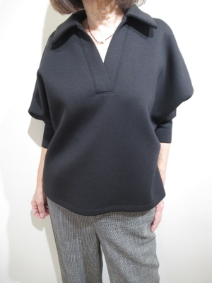 ソフト段ボール生地、スキッパー襟のプルオーバー、ドルマンスリーブ、袖口カフス、手洗い可能