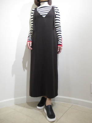 前後深V開きのジャンバースカート 着丈は後ろのV開きのところから裾まで測りました 肩ベルト調整できます 裏地なし 脇ポケット 後ろスリット(30cm弱) 手洗い可能