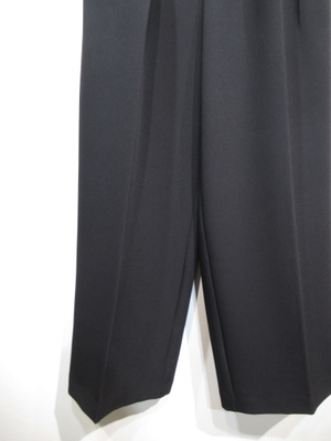 フロント2タック入り ストレートワイドパンツ 裏地無し フロントファスナー ウエスト後ろギャザーゴム 脇ポケット