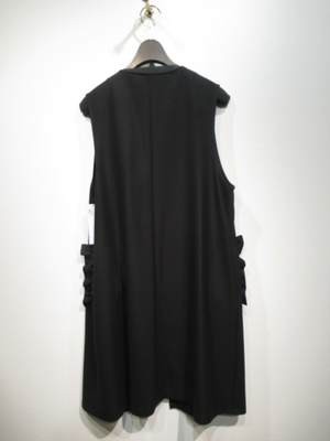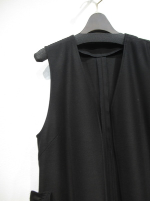着流しジレ、裏地なし、脇ポケット入り口にフリル