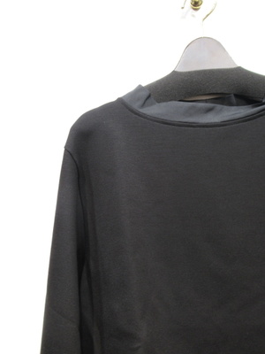 スクエアシルエットでドロップショルダー っ裾は前後差なし 襟ぐりとポケットはどちらの色も黒の異素材配色 手洗い可能 合わせるスカートあり(ID:118767)