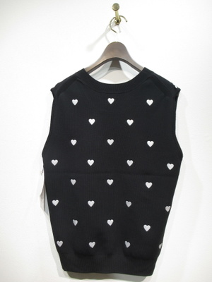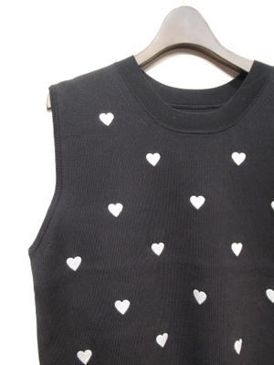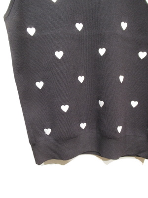 ハートの刺繍をモチーフにしたニットベスト、グレーは黒・黒はライトグレーの糸を用いてます、UVカット生地を使用、手洗い可能