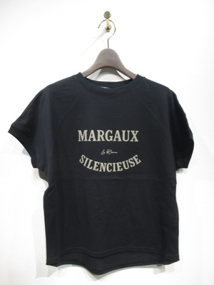 ロゴ入りカットソー(白は黒・ベージュはオフベージュ・黒はベージュのロゴ)、前後差有り、裾はややラウンド、手洗い可能