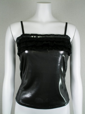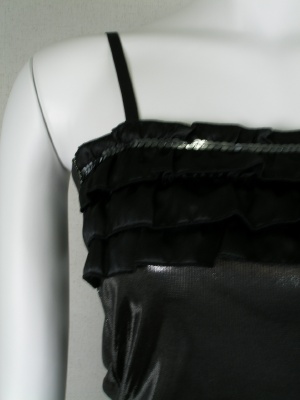 ラメ入りの生地で胸元にはフリンジ・・その上にスパンコールが飾りについてます ストラップは外せます(調節可能)