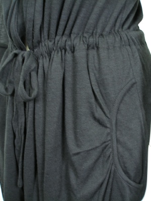 とても柔らかい素材なので、ウエストの紐を絞るとキレイにギャザーが出ます。裾も紐を通してあるので自由にギャザーをよせて。