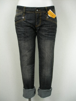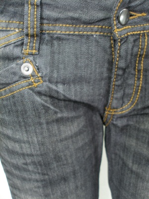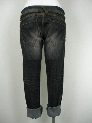 細身のテーパードなので、ロールアップしやすいデニム。裾は伸ばしてクシュクシュさせてもOK。サイズは26〜28で、7号〜11号としました。股下サイズはロールアップを伸ばした状態。ヒップサイズは7号88p、9号92p、11号96p。