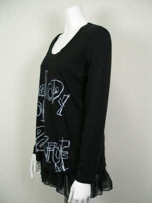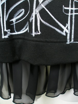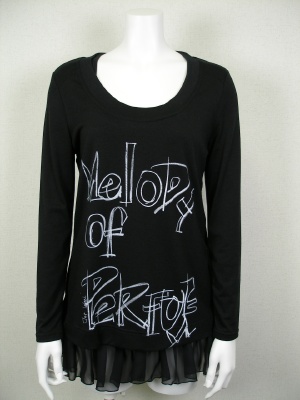 インナーは同素材のノースリーブで裾にシフォンのフリル付き。手書き風ロゴTシャツと2枚セット。