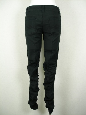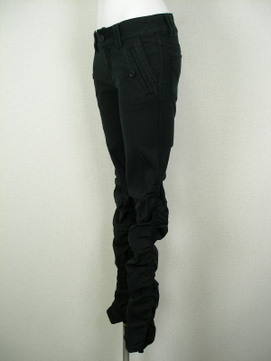 膝上から裾までギャザーを寄せ、クシュクシュさせています。ピッタリタイトなので、チュニックにも合わせやすい。