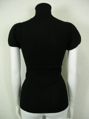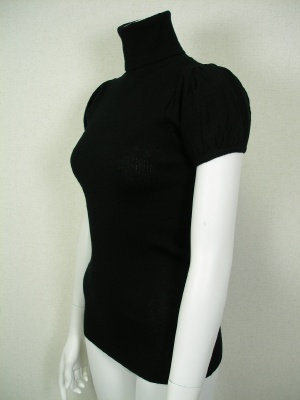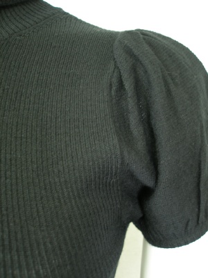 身ごろは柔らかくフィットするリブで、パフスリーブのタートルニット。ボリュームスカートにもよく合います。