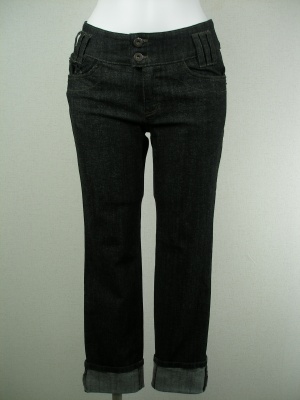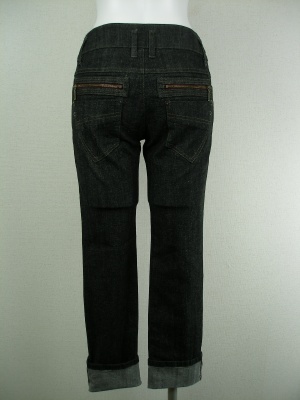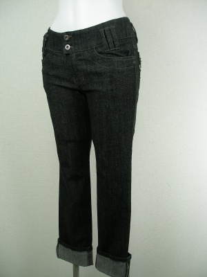 股上が深めのスキニーデニム(裾を折り返して七分丈くらいで穿く)サイズを11号、13号と特に大きめを得意とするメーカーのデニム、シルエットはキレイなのでサイズでお困りの方にオススメ。黒とネイビーの2色