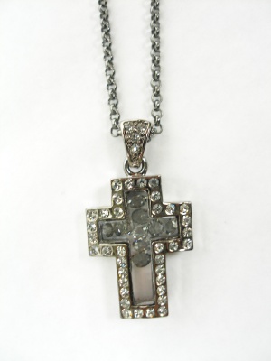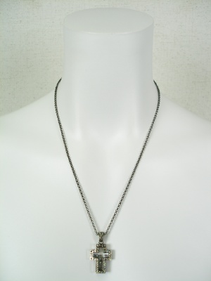 厚みのあるキラキラのクロスが可愛いネックレス。スワロフスキーとキュービックジルコニアを使っています。