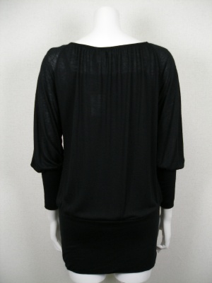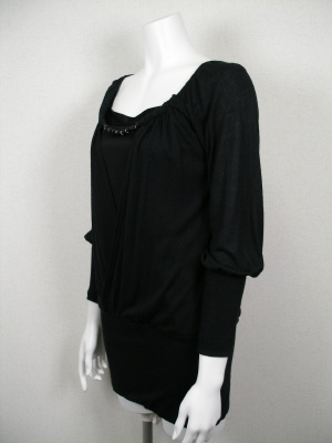 異素材の重ね着風カットソー。インナーとは腰の部分でつながっています。キャミソールはレーヨン。