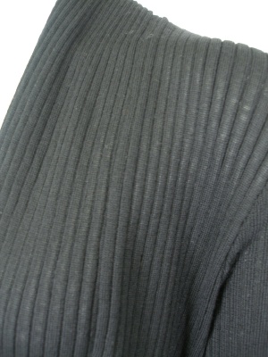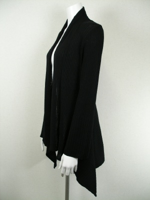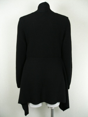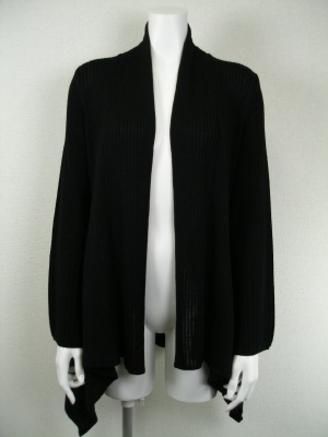 リブニットのドレープカーディは後ろの切り替えにリブニットを横で使用してるので裾のほうに広がりが出る ボタンなし
