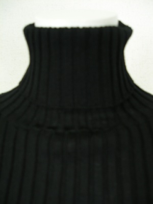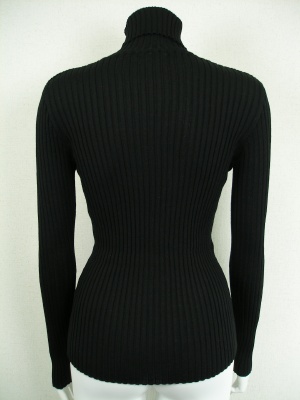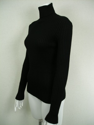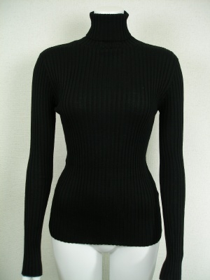 ベージックなリブタートルニット。手洗いしても縮みにくく、毛玉ができにくいトリートメント加工を施してあります。