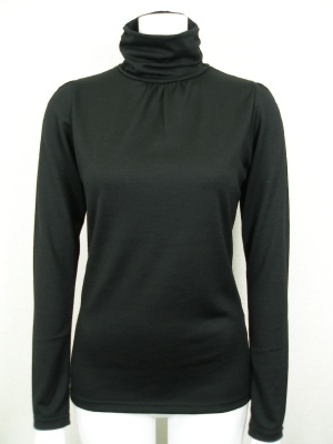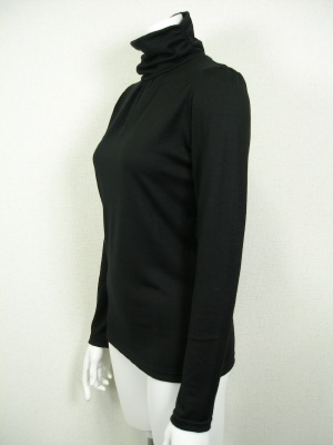 薄手で暖かなウールのタートルカットソー。冬のインナーとして重宝します。ギャザー使いで一枚でも可愛くお召しいただけます。