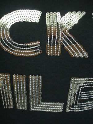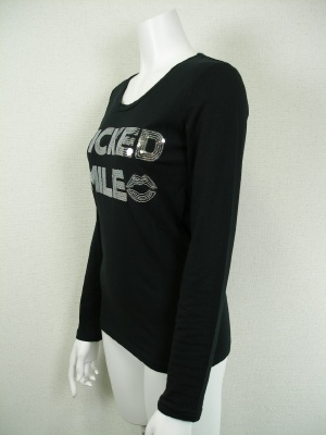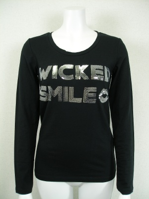 スパンコールのロゴがポイントのTシャツ。ストレッチの効いた着やすい素材です。