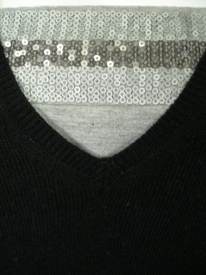 スカートにもなるベアトップはスパンコールたっぷり。ウエスト部分はゴムで裏地付き。フワフワのアンゴラ入りニットとセットです。