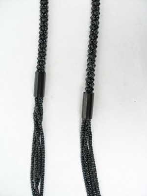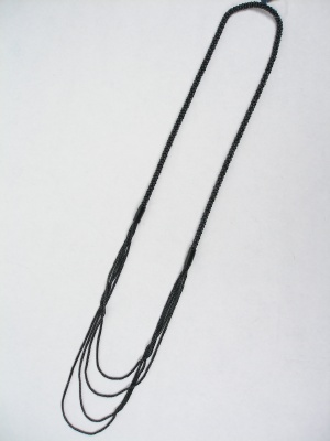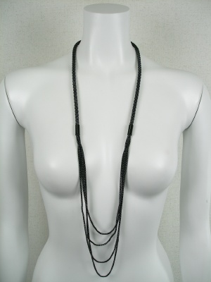 細いチェーンを束ねたロングネックレス。大人っぽくクールな印象です。