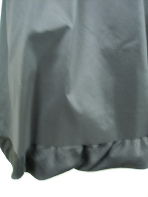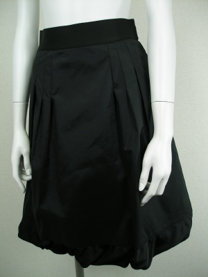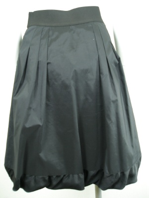 バルーンスカート、ウエストゴム、脇ファスナーあり。 裾はポリエステルシフォンでトリミング。