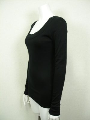 素肌にとても気持ちの良い素材のカットソーです。長めのお袖はくしゅくしゅさせて。