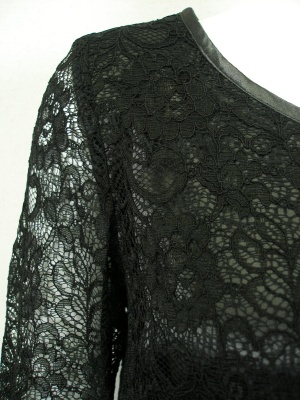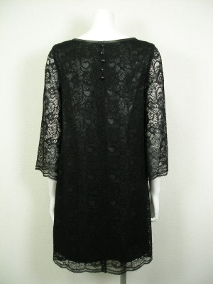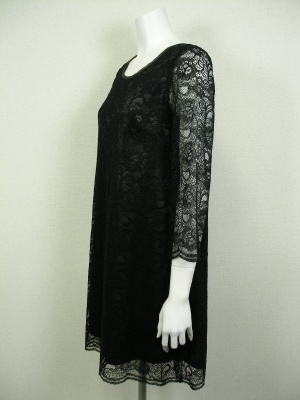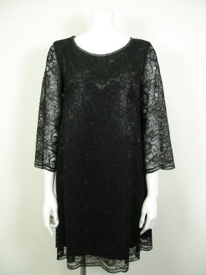 総レースのワンピース。身頃は裏地付きでお袖は透けます。Aラインでお袖もフレアー。